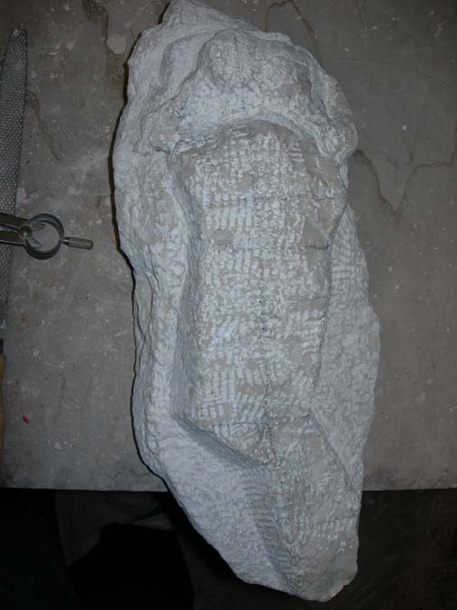 Bonsoir à tous , Encore une photo pour le suivi de l'avancement de ma sculpture. A bientôt Bernard ----- Christina a écrit ----- Bonjour Christina, Quand je sens que je m'énerve, j'arrête de sculpter. A+++ Bernard Chapeau, Bernard, J'admire ton application, ta patience... A+++ Christina ----- LOUGARRE a écrit ----- ----- Solène a écrit ----- Bonjour à tous, Je m'aperçois que je n'ai pas répondu à Christina. Je sculpte "Tango serpentin" dans du calcaire trés dur à la pointe, tous les samedis pendant 3h au cours de sculpture Ca avance lentement. La sculpture sur pierre ce n'est pas l'Everest mais une technique différente de la terre. Comme on ne peut pas retoucher, on fait de la géométrie. Le point commun avec l'Everest serait qu'il y a une phase d'approche. Avant d'entrer dans le détail des courbes des creux et des bosses il faut faire des plans (obliques, verticaux). chaque volume est ensuite travaillé l'un par rapport à l'autre. J'essaierai de vous expliquer tout ca au fur et à mesure de l'avancement. A+++ Bernard Bonsoir Bernard, A mes yeux, le travail de la pierre, c'est l'Everest, le truc inaccessible ! A moins, peut être d'un stage à Lourdes... Donc, je ne dis rien, et je regarde benoîtement. A+ Solène ----- LOUGARRE a écrit ----- ----- Christina a écrit ----- Bonsoir à tous, Comme promis je vous envoie des photos de l'avancement de mes travaux. Je n'ai pas eu trop de temps à y consacrer cette semaine et ca avance lentement. La pierre est dure mais il faut la sculpter comme si on la pelait sans frapper trop fort sinon c'est la casse et tout est bon pour la benne ! La sculpture sur pierre est moins spontanée que le modelage. Bravo Gilles pour la femme au sac elle est trés élégante. A+++ Re-bonsoir Bernard, Effectivement, c'est toute une technique, maquette puis sculpture. En plus tu crées de grosses pièces ! C'est bien. Je ne sais pas si je serai assez patiente; ça parait prendre beaucoup de temps. J'ai pris des photos et je vais poster ce que j'ai fait en stéatite, 3 qui sont terminés et 3 qui attendent depuis plus d'un an. Ce sont des petites pièces. Avec quelle pierre scuptes-tu Tango serpentin ( bien trouvé le nom !) ? J'espère voir le résultat...lorsque ce sera terminé. A bientôt. Christina ----- LOUGARRE a écrit ----- ----- Christina a écrit ----- Bonsoir Christina, Je veux bien te donner des conseils pour la sculpture sur pierre. Ce n'est pas plus difficile de travailler une pierre dure ca va moins vite c'est tout. C'est bien que tu ai commencé par l'argile car ca permet de comprendre les volumes et leur enchaînement. J'ai fait 5 ans de modelage avant "d'oser la pierre". On peut commencer avant bien sûr. La différence principale entre le modelage c'est qu'avec la pierre il faut tout anticiper. Comme on enlève au lieu d'ajouter il faut prévoir large pour les volumes. L'avantage de maîtriser le modelage te permettra de faire des maquettes pour faire tes sculptures en pierre. C'est comme un brouillon ou tu as droit à l'erreur si tu veux. Au début j'avais quelques différences dans le résultat entre la maquette et le résultat en pierre avec la pratique il y en a moins mais tu est toujours à la merci d'un éclat plus gros que prévu ou d'un défaut dans la pierre. Dans ce cas on s'adapte avec son imagination... J'espère qu'il y aura d'autres participants du forum qui voudront faire de la pierre, je me sentirai moins seul. Je vous poste deux photos de mes "plaisirs" du samedi qui sont la maquette recto verso de ce que je fais en ce moment (en plus du nu couché que je fais le soir en semaine après mon travail). La sculpture en cours fera environ 80 cm de haut sur 25 de large. Je l'appelle Tango serpentin et je compte terminer pvers mars 2006. Bonne soirée Bernard Bonjour Bernard, Je viens de faire une petite visite de ton site et j'y ai trouvé des statues qui me plaisent beaucoup. Bravo ! Moi, j'ai travaillé un peu la stéatite il y a 2 ans, une pierre très tendre; donc sans comparaison avec ce que tu fais qui me parait bien plus difficile. C'est avec le modelage de l'argile que je me sens le plus à l'aise, mais, là, après avoir vu ton travail, j'ai envie de reprendre un morceau de stéatite. Le travail est long mais la découverte de la pierre à la fin, après ponçage et vernis, avec ses veines, ses couleurs est un moment toujours intéressant. A + Christina P.S. : je vais prendre des photos et tu pourras peut-être m'aider par tes conseils. ----- LOUGARRE a écrit ----- Bonjour, Je suis nouveau sur ce forum, je pratique la sculpture en amateur. Voilà si le sujet de la sculpture sur pierre vous interesse on peut en parler. J'ai mis l'adresse de mon site pour une petite visite. A+ Bernard http://lougarre.monsite.wanadoo.fr |